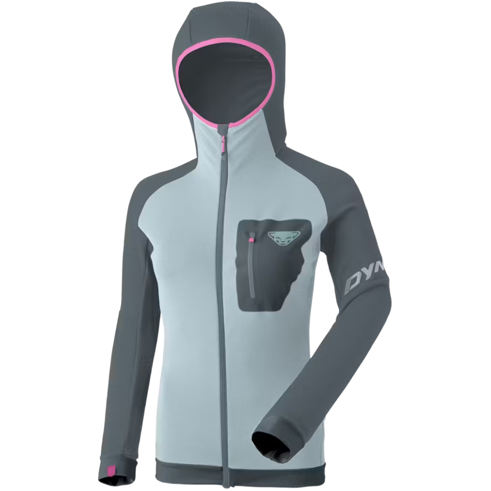 Ľahká fleecová dámska mikina Dynafit Radical Polartec Jacket vyrobená z materiálu Polartec Powergrid, Vám dopraje pohodlný, ničím neobmedzovaný pohyb. Štvorsmerne elastický materiál a športový strih zabezpečuje, že mikina vždy presne sedí na tele a tým plní funkciu strednej vrstvy, ktorou je odvádzanie vlhkosti k povrchu. Zvýšenú ochranu hlavy dosiahnete aj vďaka komfortnej priliehavej kapucni. Zakončenie rukávov je vybavené otvormi na palce. Na odkladanie a transport drobností môžete využiť náprsné zipsové vrecko.