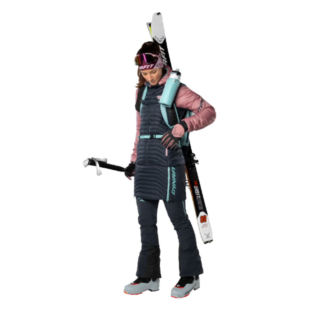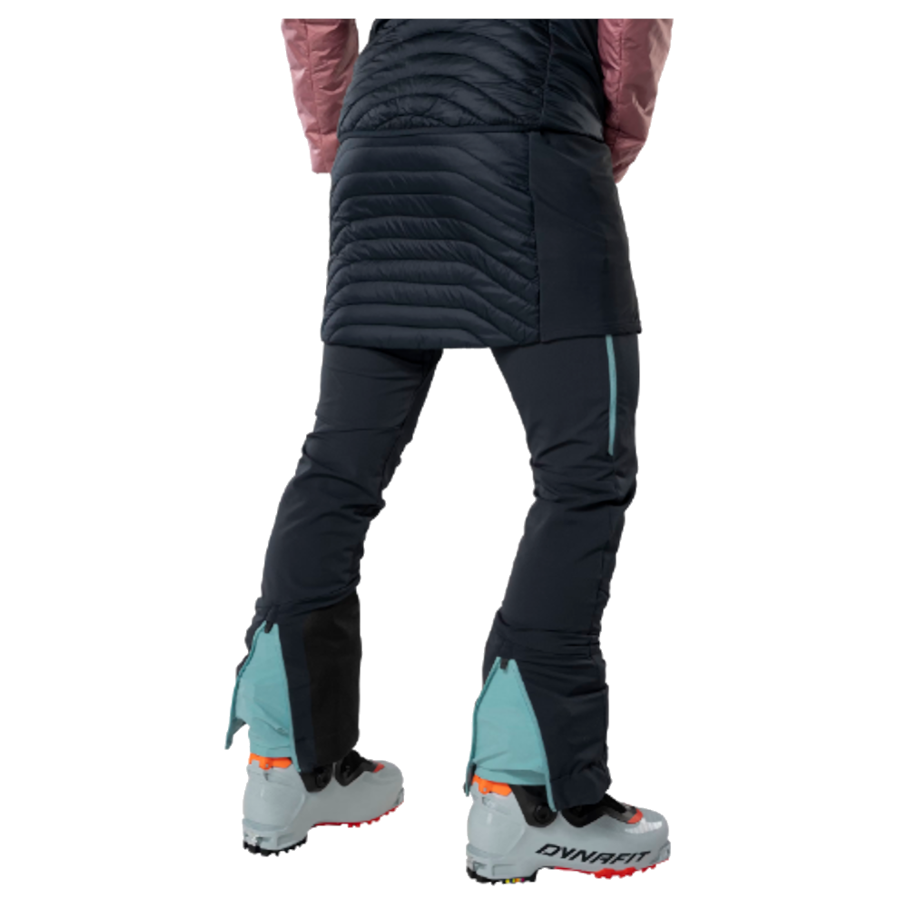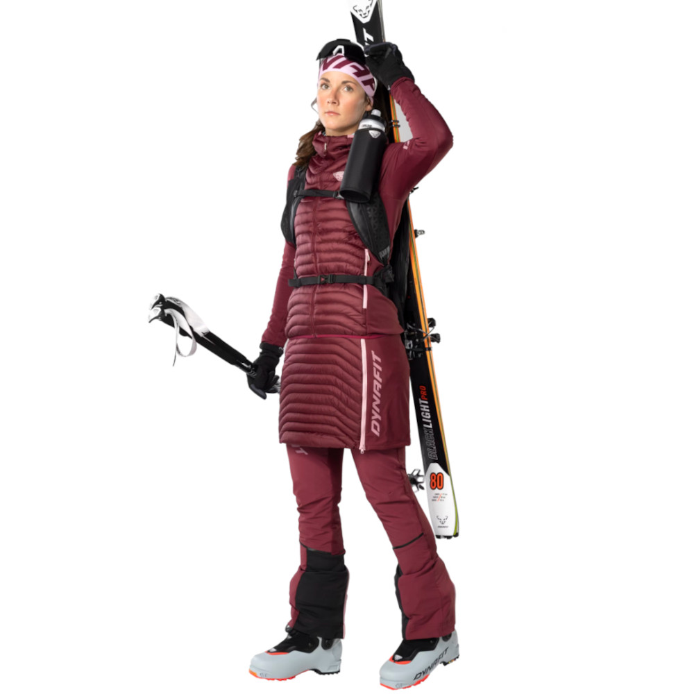 Dynafit Speed Insulation Skirt dámska sukňa na outdoorové aktivity s inovatívnou syntetickou izoláciou. Je ľahká a pohodlná, v zimnom období chráni pred prechladnutím. 100% recyklovaná syntetická výplň EcoDown vyzerá ako páperie a aj na dotyk je ako páperie. Jej výhoda oproti páperiu spočíva v jednoduchšej starostlivosti, nie je citlivá na vlhkosť, izoluje aj keď je vlhká a je príjemná a mäkká ku pokožke. Bočné panely zo strečového materiálu umožňujú vynikajúcu voľnosť pohybu. Praktický celorozopínací bočný zips ju umožní obliekať/vyzliekať bez toho, aby ste si museli vyzúvať topánky/lyžiarky.