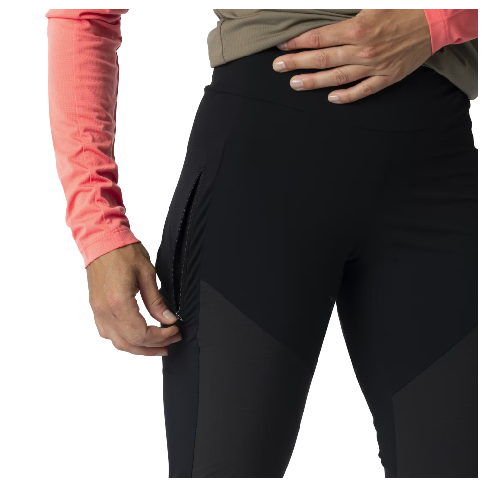 Legíny Traverse Hybrid sú perfektným spoločníkom pre ambiciózne horské športovkyne, ktoré chcú spojiť ľahkosť a odolnosť. Technická zmes materiálov ponúka priedušnosť a elasticitu, zatiaľ čo vystužené zóny na kolenách a zadku s pevným Dynastretch materiálom zaisťujú odolnosť. Vysoký a pohodlný pás zaručuje stabilné nosenie a priliehavý strih podporuje každý pohyb. Na boku je malé vrecko na zips na uloženie kľúčov, gélov alebo iných nevyhnutností.