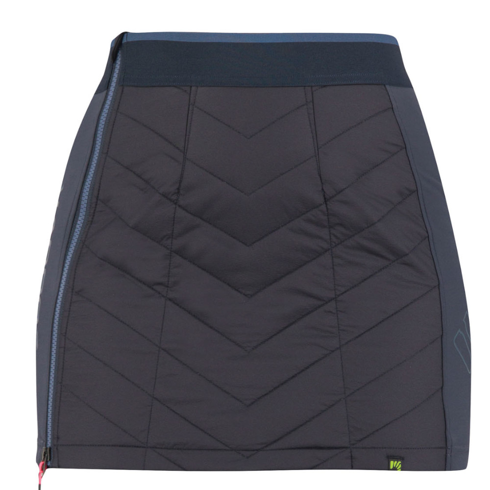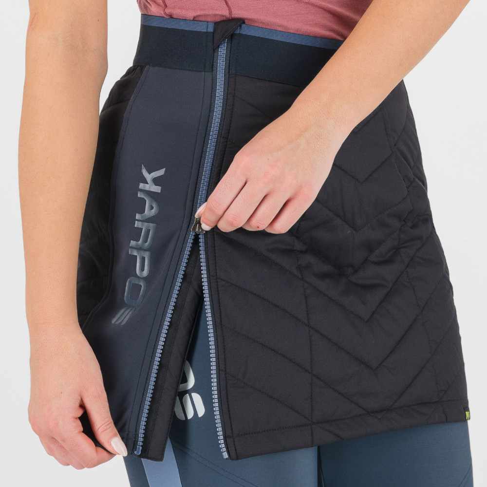 Zimná outdoorová sukňa Karpos Alagna Plus predstavuje ľahkú, hrejivú a nreprefúkavú, vrchnú vrstvu na skialp a športovanie vo veľmi chladnom počasí. Charakterizuje ju jedinečný dizajn, funkčné materiály a bočný zips uľahčujúci obliekanie/vyzliekanie. Pre väčší komfort a slobodu v pohybe je táto prešívaná sukňa vybavená širokým elastickým lemom v páse a priedušnými a pružnými časťami na bokoch.
