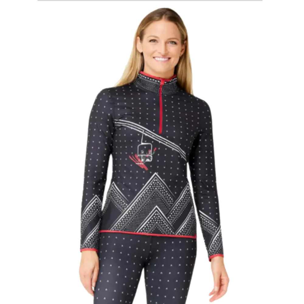 Dámsky rolák Krimson Klover Top s originálnym motívom je vhodný na všetky zimné outdorové aktivity. Elegantná farebná kombinácia so zimnou grafikou je atraktívny kúsok, ktorý nesmie chýbať vo Vašom šatníku. Je vyrobený z príjemného a funkčného štvorcestného strečového materiálu, ktorý je veľmi elastický, priedušný, ľahký, udržuje teplo, rýchlo schne a poskytuje výbornú funkčnosť a zároveň aj eleganciu. Praktický polovičný zips s ochranou proti oderu brady je výborný doplnok pre rýchlu reguláciu telesného tepla.