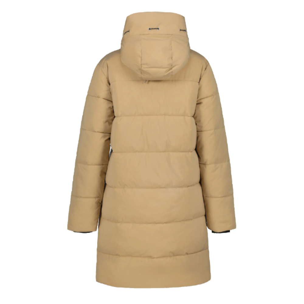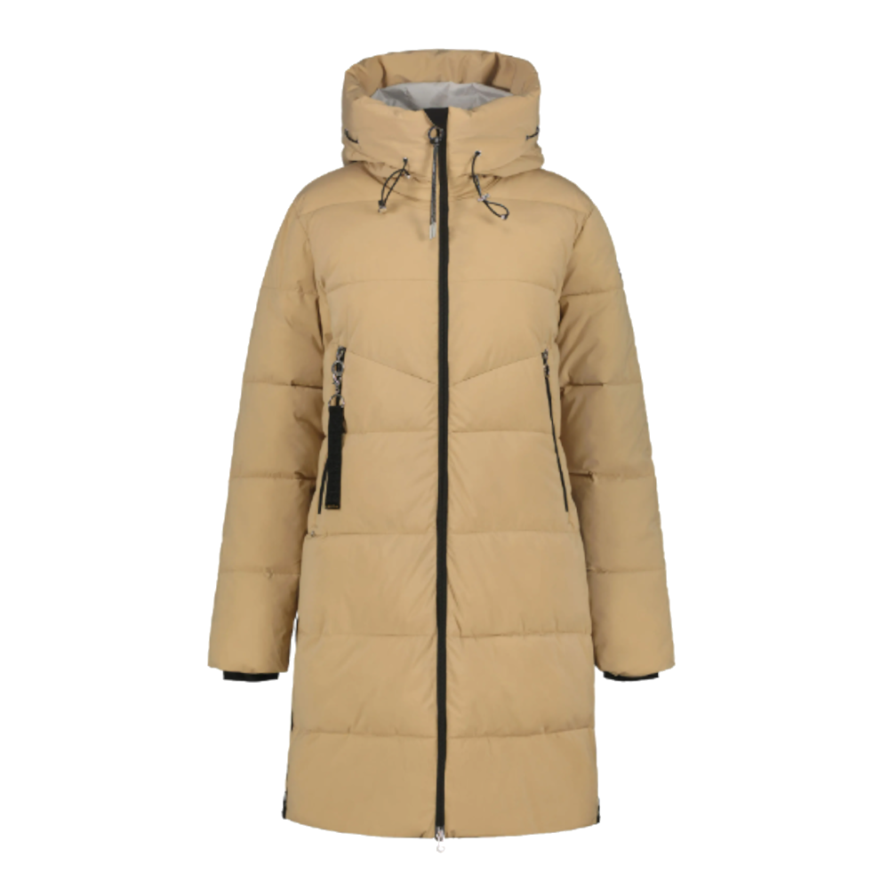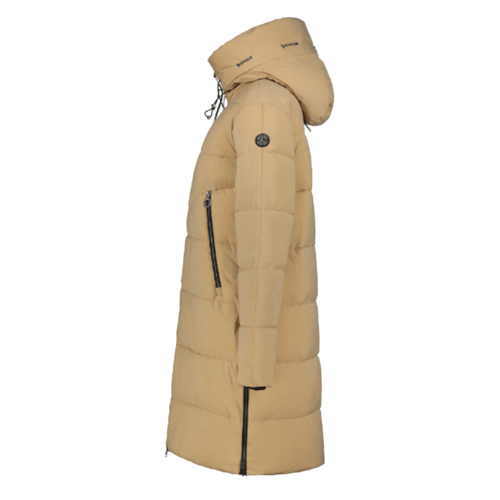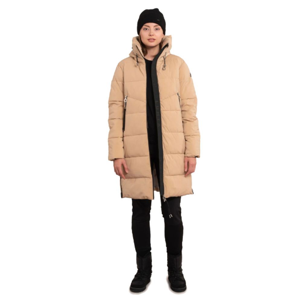 Dámsky dlhý kabát Luhta. Pevná kapucňa. Kapucňa má dve rôzne možnosti nastavenia. Elastické vnútorné manžety. Dve predné vrecká na zips. Podšité vrecká na zahriatie rúk. Vnútorné vrecko na zips. Obojsmerný zips na prednej strane. Dlhé zipsy na bokoch. Vodný stĺpec 5 000 mm. Priedušnosť 5 000 g\m2\24h.