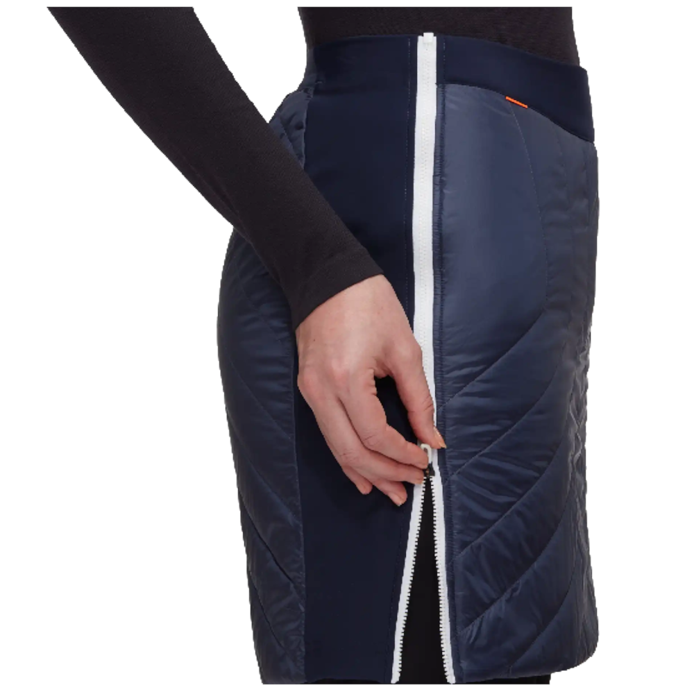 Dámska sukňa Mammut Aenergy IN Skirt na zimnú turistiku alebo lyžovanie s bočnými strečovými panelmi pre komfort a voľnosť pohybu. Pre pohodlné obliekanie aj na pôvodné nohavice majú 1 bočný zips po celej dĺžke sukne a 1 bočný krátky zips. V teple vás udrží izolácia Primaloft Gold Active s gramážou 80 g/m2 a v suchu Pertex Quantum so zvýšenou vodeodpudivou DWR úpravou.