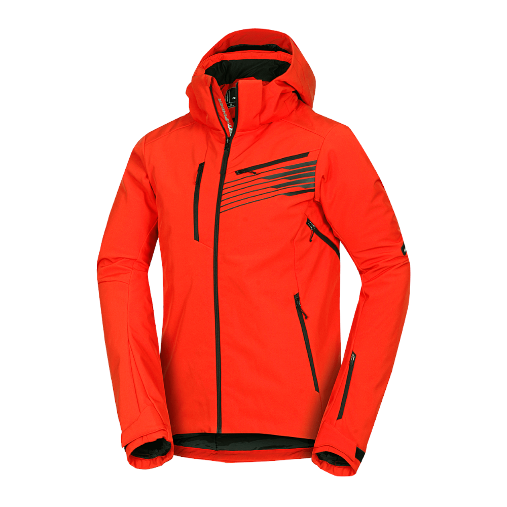 Táto zateplená lyžiarska softshellová bunda vás nikdy nenechá v núdzi, či už sa vrhnete do zjazdu alebo sa vydáte na túru na bežkách. Je určená do zimy, chladu, sneženia a vetra. Vrchný materiál je 3-vrstvový strečový softshell, ktorý je vodoodpudivý a vetruodolný s parametrami vodného stĺpca a priedušnosti 10 000 mm H₂O / 5 000 g/m²/24 h. Bunda disponuje hrudným vreckom na zips, dvoma bočnými vreckami na zips, vreckom na rukáve pre skipass a vnútorným vreckom na zips pre bezpečné uloženie cenností. Ďalšie vnútorné vrecko je pripravené na uloženie lyžiarskych okuliarov. Snehový pás a zips podšitý légou proti prefúknutiu dodatočne chránia proti chladu a zvyšujú tým váš tepelný komfort. 3D kapucňa je odnímateľná, takže môžete bundu prispôsobiť počasiu a potrebám. Predtvarované rukávy s nastavením obvodu na suchý zips vám zabezpečia dokonalé pohodlie, a regulácia spodného okraja sťahovaním umožní prispôsobenie bundy vašim potrebám. Pre dodatočnú ventiláciu v prípade potreby je bunda vybavená zipsami v podpazuší. Materiály: 94 % Polyester, 6 % Spandex