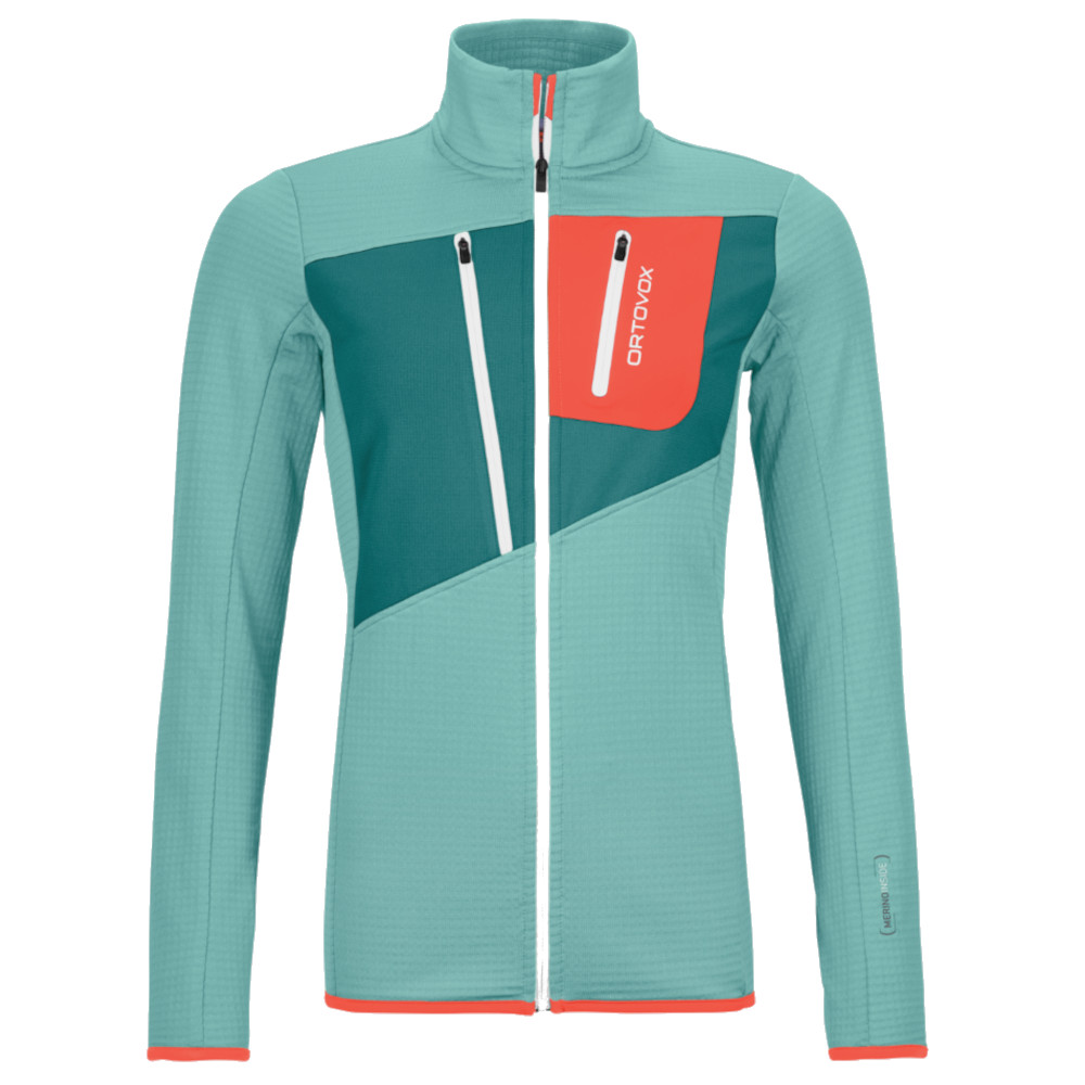 Línia FLEECE GRID je tak ideálnym spoločníkom do hôr: Táto fleecová mikina je vďaka svojej vnútornej štruktúre kanálov ľahká, no zároveň dokáže zachytiť vzduch a teplo cez izolačné vzduchové vrecká. Fleece Light vložka v oblasti hrudníka a dvojvrstvové náprsné vrecko poskytujú dodatočnú ľahkú ochranu pred vetrom. Počas hodín intenzívneho pohybu sa materiálové zloženie môže pochváliť vynikajúcou rozťažnosťou a poskytuje ventiláciu vďaka štruktúre vnútorných kanálikov. Teplotne regulujúce vlastnosti podporuje jemná merino vlna na vnútornej strane: tasmánska panenská vlna reguluje úroveň vlhkosti a teploty, rýchlo schne a má vlastnosti neutralizujúce pachy. Vďaka merino vlne sa pohodlne nosí. Dve náprsné vrecká poskytujú priestor na uloženie máp, mobilného telefónu alebo fit tyčiniek.