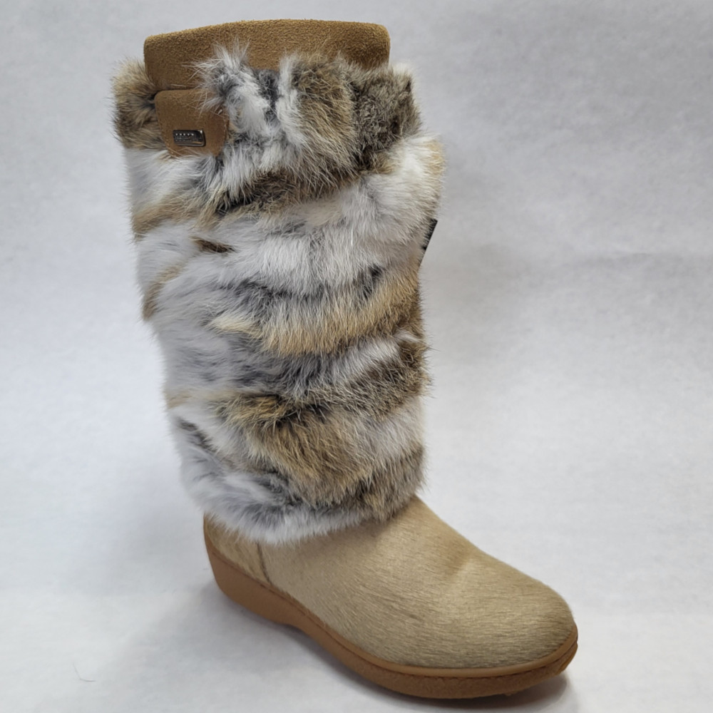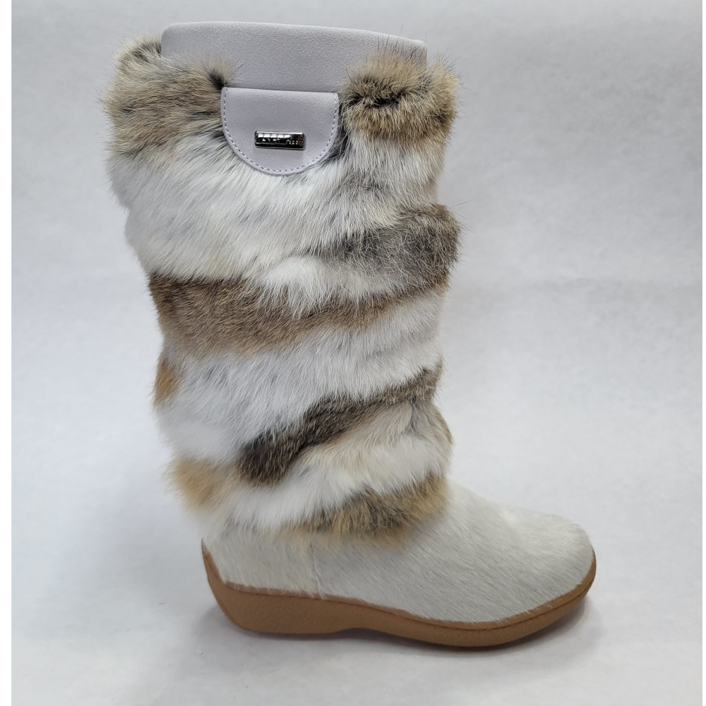 Dámske extravagnatné luxusné čižmy vyrobené z pravej kožušiny.