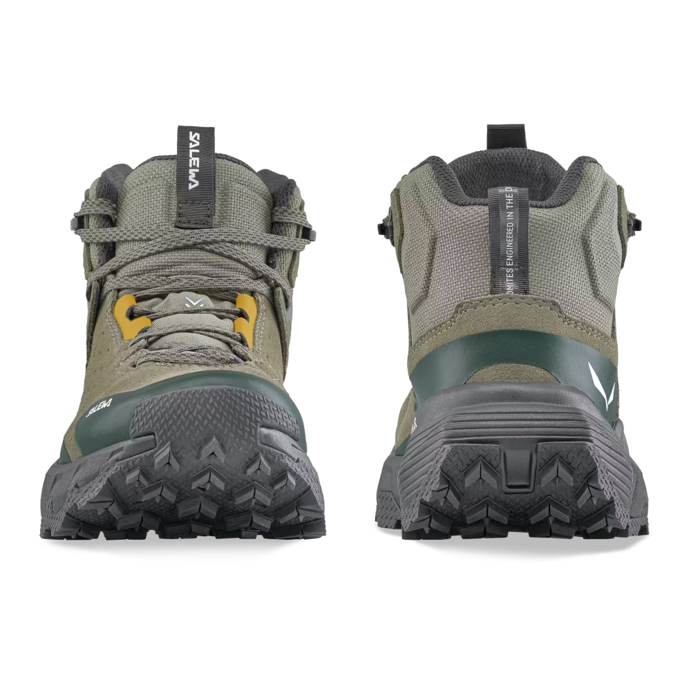 Pedroc 2 Leather Mid Powertex® je ľahká a podporná stredne štíhla rýchlostná turistická obuv so zvrškom zo semišu a nepremokavou, priedušnou membránou Powertex® bez PFAS, ktorá vám poskytuje všestrannosť a ochranu pri rýchlych aktivitách v horskom teréne aj v mestskom prostredí. Nadrozmerná, tlmiaca medzipodrážka z EVA poskytuje optimálny odraz, zatiaľ čo nový systém Salewa® 3F s vplyvom bežeckej techniky a pevná doska z EVA zaisťujú dynamickú stabilitu. Podrážka Pomoca™ so smerovými výstupkami podporuje plynulý krok a optimálnu priľnavosť a trakciu na premenlivých povrchoch.