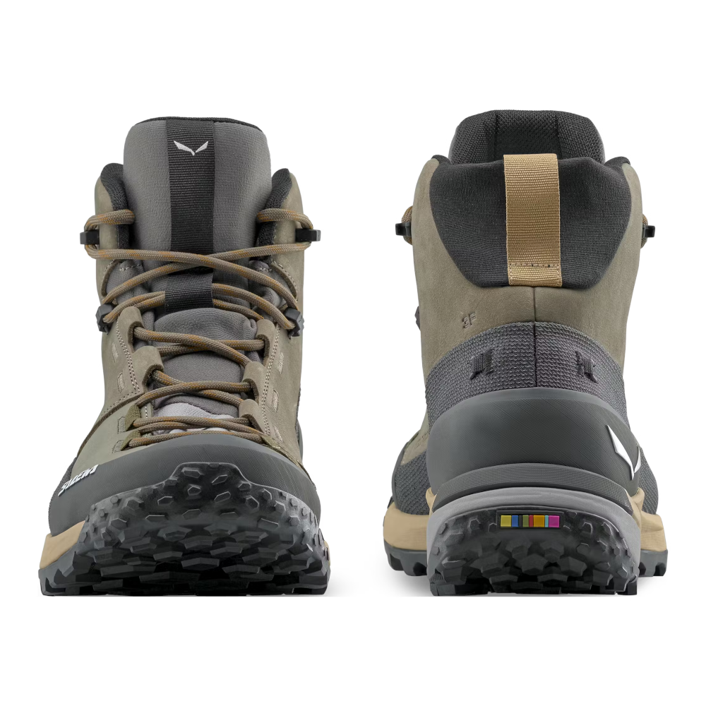 Model Puez Leather Mid PTX, navrhnutý tak, aby zabezpečil pohodlie pri horských túrach na chodníkoch aj mimo nich, je určený pre pohodlie pri turistike. Jeho odolný, ale pružný zvršok z talianskej nubukovej kože je vystužený integrovaným systémom Kevlar® 3F v oblasti členku a hybridným textilným lemom odolným proti oderu, zatiaľ čo jeho vodeodolná a priedušná membrána Powertex® ochráni pred nepriaznivým počasím bez použitia perfluórovaných chemikálií (PFAS). S dvojitou medzipodrážkou EVA pre lepšie odpruženie päty, mäkkým elastickým jazykom a prispôsobiteľnou stielkou. Vnútorná lemovacia doska zaisťuje flexibilitu a odraz pre dlhotrvajúce pohodlie a zvýšenú stabilitu. S prispôsobiteľnou stielkou CFF a redukciou objemu, ktorá vám umožňuje prispôsobiť si veľkosť. Podrážka Pomoca™ Alpine Trekker pod nohami poskytuje pevnú priľnavosť a trakciu v technickom teréne.