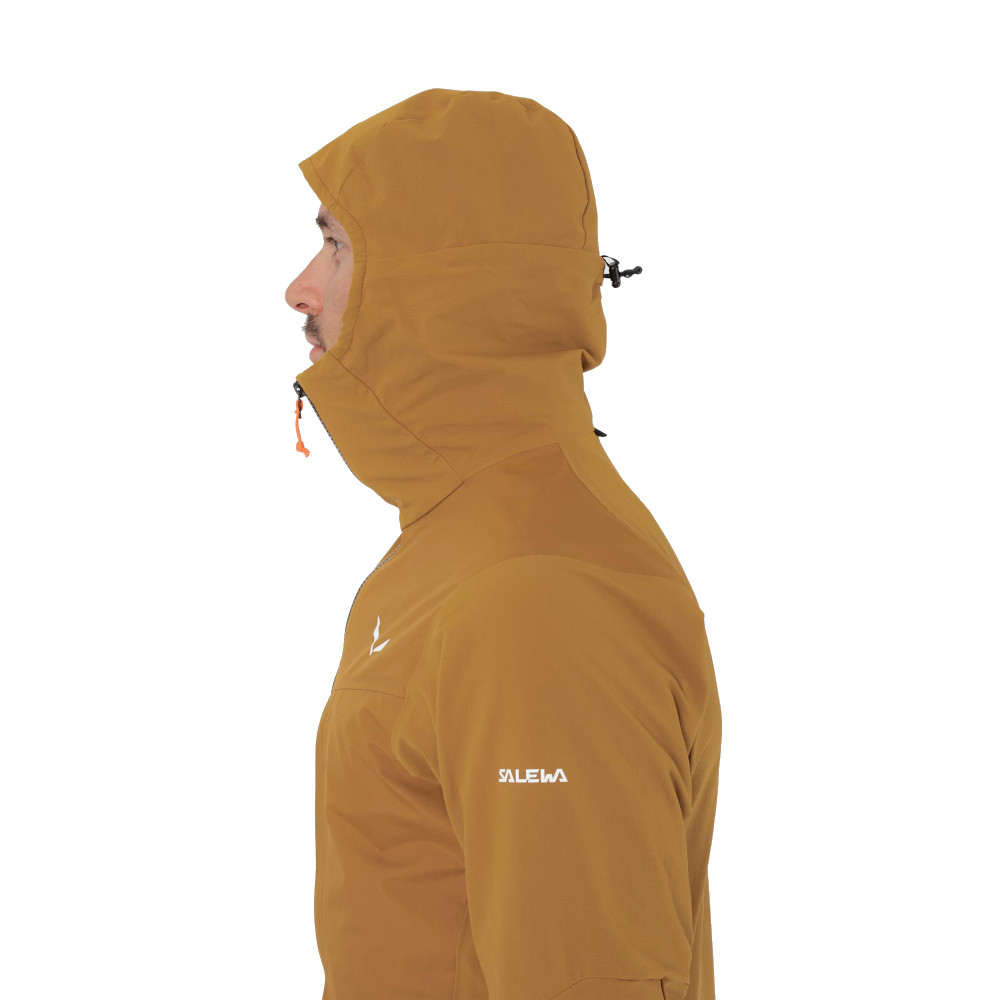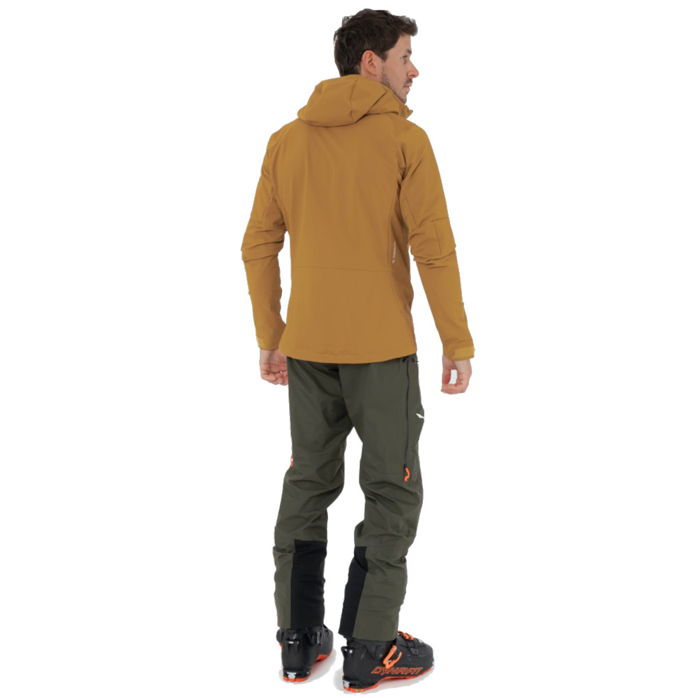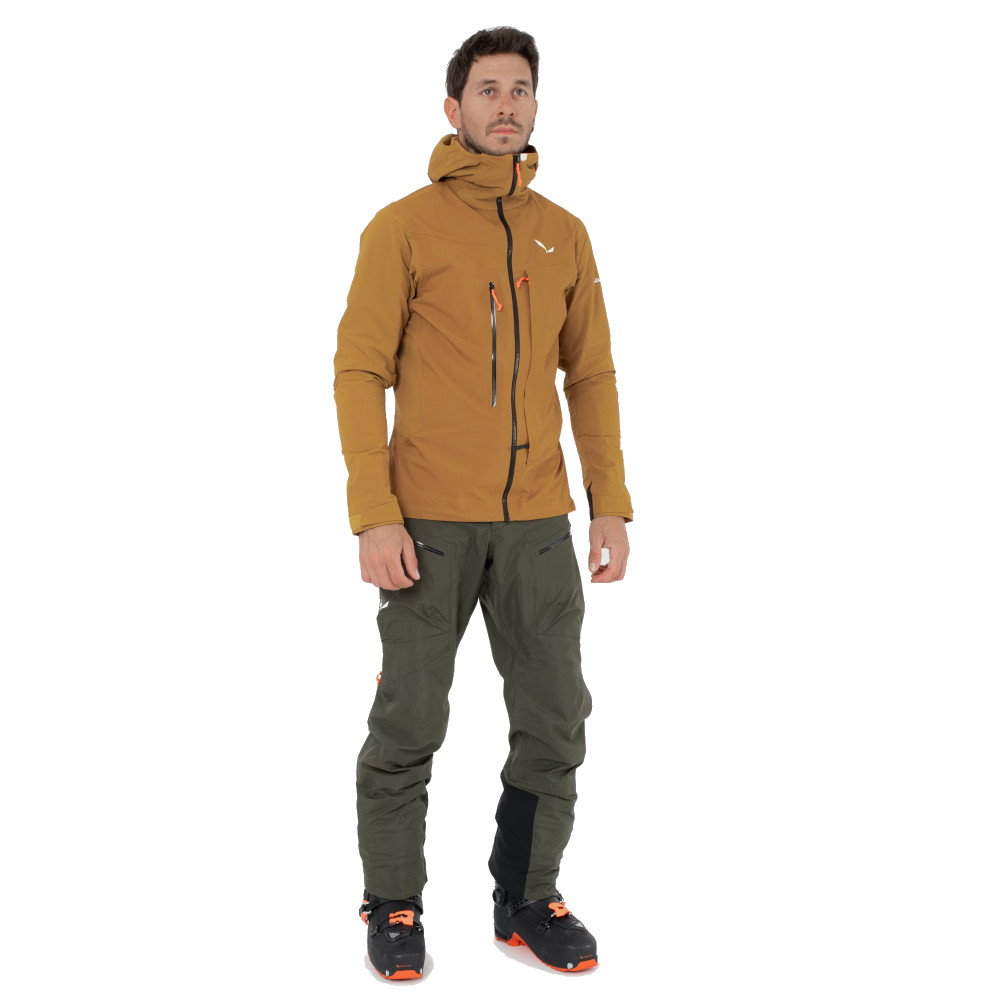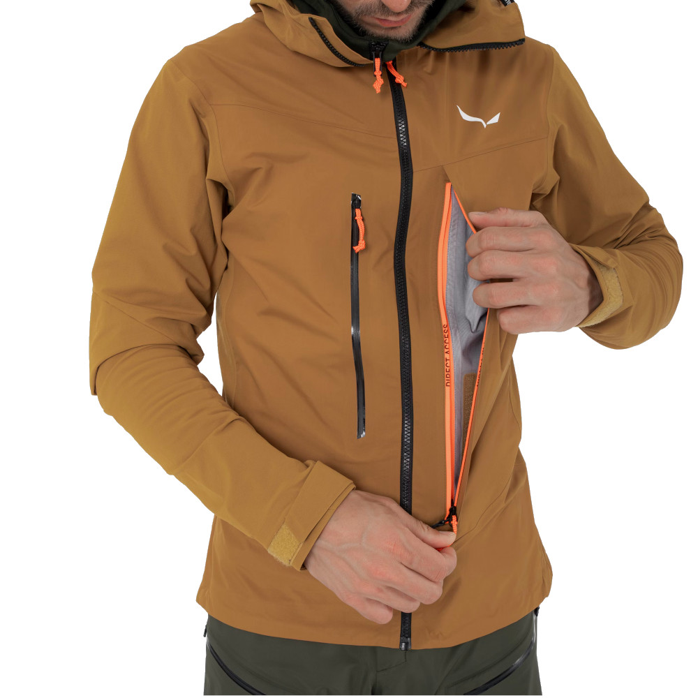 Premenlivá aktivita s náročnými výstupmi, kde sa musíte intenzívne hýbať, a zjazdmi v chladnom prostredí. Bunda Salewa Sella Durastretch Hybrid Softshell Jacket Men prináša vodeodolnú flexibilitu a vysoký výkon v rôznorodých podmienkach. Vďaka špecifickej hybridnej konštrukcii ponúka bunda pohodlie a možnosti pohybu ako Softshellová bunda a ochranu ako Hardshellová bunda. Funkčný dizajn s body mappingom ukladá rôzne panely so špecifickou štruktúrou tak, aby sa zabezpečila maximálna funkcionalita – odvod vlhkosti, ochrana proti chladu a neobmedzený pohyb. Na chrbte a na rukávoch sa nachádza elastický softshell materiál Durastretch s 22% obsahom merino vlny. Tento materiál poskytne výbornú priedušnosť a voľný pohyb. Vpredu a na pleciach sa nachádza odolný 3 vrstvový Powertex, ktorý je odolný proti vetru a vode. Špecifickou vlastnosťou bundy je predný otvor s obojsmerným zipsom pre rýchly prístup k lavínovému vyhľadávaču, alebo spodnej vrstve oblečenia. Bunda je taktiež vybavená vodeodolnými zipsami a vodeodpudivým ošetrením (DWR). Rukávy sú ukončené manžetami, ktoré je možné si prispôsobiť suchým zipsom.