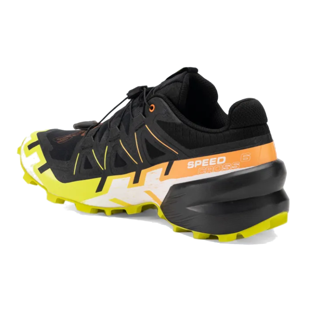 Šiesta verzia legendárneho modelu Speedcross od značky Salomon ostáva verný svojej povesti a opäť prináša všetky pozitívne vlastnosti, na ktoré je človek pri tomto modeli zvyknutý. Teraz je ešte ľahšia a ešte priľnavejšia v teréne, so štruktúrou podrážky, ktorá pomáha blatu opadávať. Medzipodrážka z pružnej zmesi EnergyCell™+ poskytne výbornú návratnosť energie, výborné tlmenie a odolnosť. Spomínaný agresívny grip je zabezpečený podrážkou Mud Contagrip®. Má 5 mm hlboký dezén a je vyrobená zo zmesi zameriavajúcej sa na priľnavosť. Salomon Speedcross 6 je určený na všetky typy prírodného povrchu, neupraveného terénu, resp. trailu. Ich silnou stránkou sú najmä tie najstrmšie stúpania a klesania, kde poskytnú vynikajúcu stabilitu a držanie, silný odraz a brzdenie. Problém im nerobí ani mokrý terén.