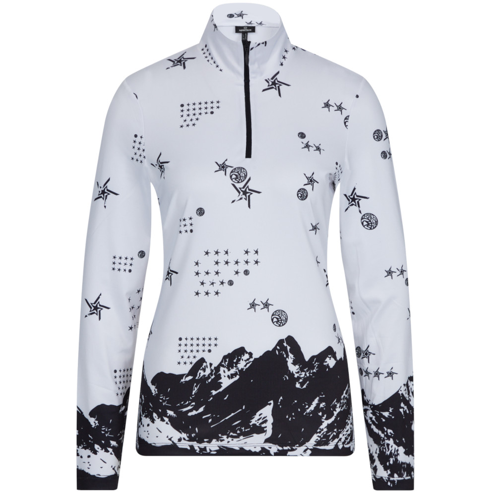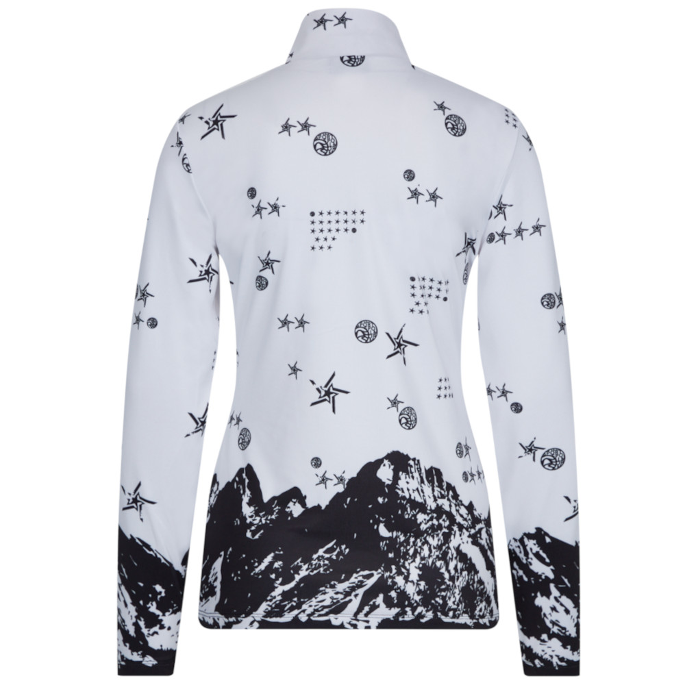 Ďalší módny kúsok od značky Sportalm. Malý stojačik udrží spodnú vrstvu útulnú a v teple za každého počasia. Krátky zips v strede prednej časti uľahčuje obliekanie. Upúta vašu pozornosť exkluzívna celoplošná potlač s horskou krajinou na leme.