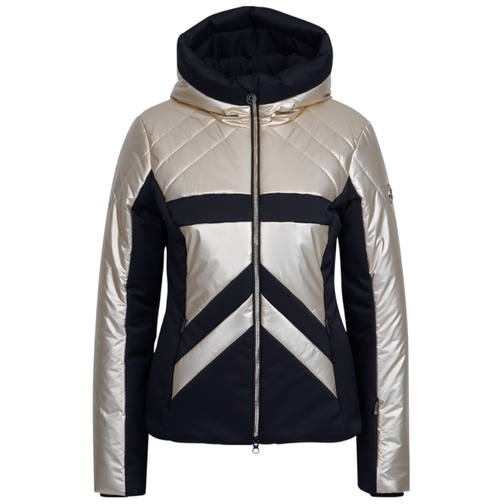 Pripravte sa dokonale na svah s touto vystuženou lyžiarskou bundou. Pevná kapucňa a kontrastné vsadky na prednej a zadnej strane dodávajú tejto bunde dynamický vzhľad. Ozdobné prešívanie vpredu a na rukávoch zvýrazňuje športový charakter. Vrecká na zips s jemným švom v prednej časti sťahovákov Sportalm ponúkajú nielen úložný priestor, ale aj podčiarkujú štýlový šarm. Vrecko na zips s jemným švom na rukáve je pre vás ako stvorené. Dvojcestný stredový predný zips umožňuje všestranné nosenie, zatiaľ čo podšívka proti vetru a vnútorné vrecko na zips vám poskytnú extra teplo a úložný priestor. Čo sa týka technických vlastností, bunda má vodný stĺpec a priedušnosť na úrovni 10.000/10.000, čo znamená, že je odolná proti prenikaniu vody a zároveň umožňuje odvetranie a udržuje pohodlnú mikroklímu vo vnútri bundy.